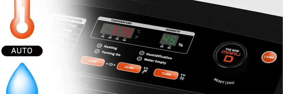 - LED indoor light can be easy to check egg condition. Built-in ‘open-door detection’ micro switch to prevent temporary temperature variation while opening and closing the door.
