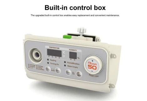 The RCOM MAX 50 (Standard) DO Incubator has an easy to read digital display which shows both the Temperature and Humidity. The MAX 50 DO contains Rcom's long-standing incubation technology which carefully checks and adjusts the temperature and humidity (cannot dehumidify) as needed during the incubation period.